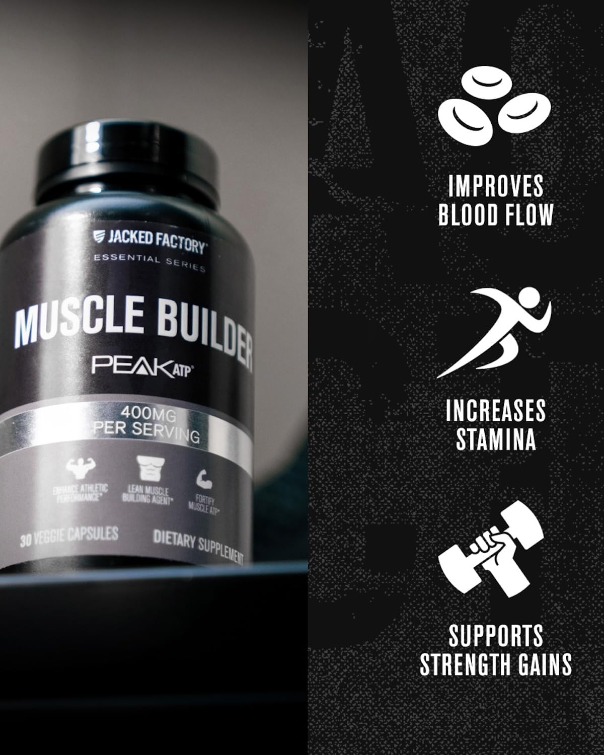 Boost ATP: Jacked Factory Muscle Builder contains 400mg of Patented PeakATP Adenosine 5’-Triphosphate (ATP) Disodium, which is structurally identical to the ATP that your body naturally produces and uses.