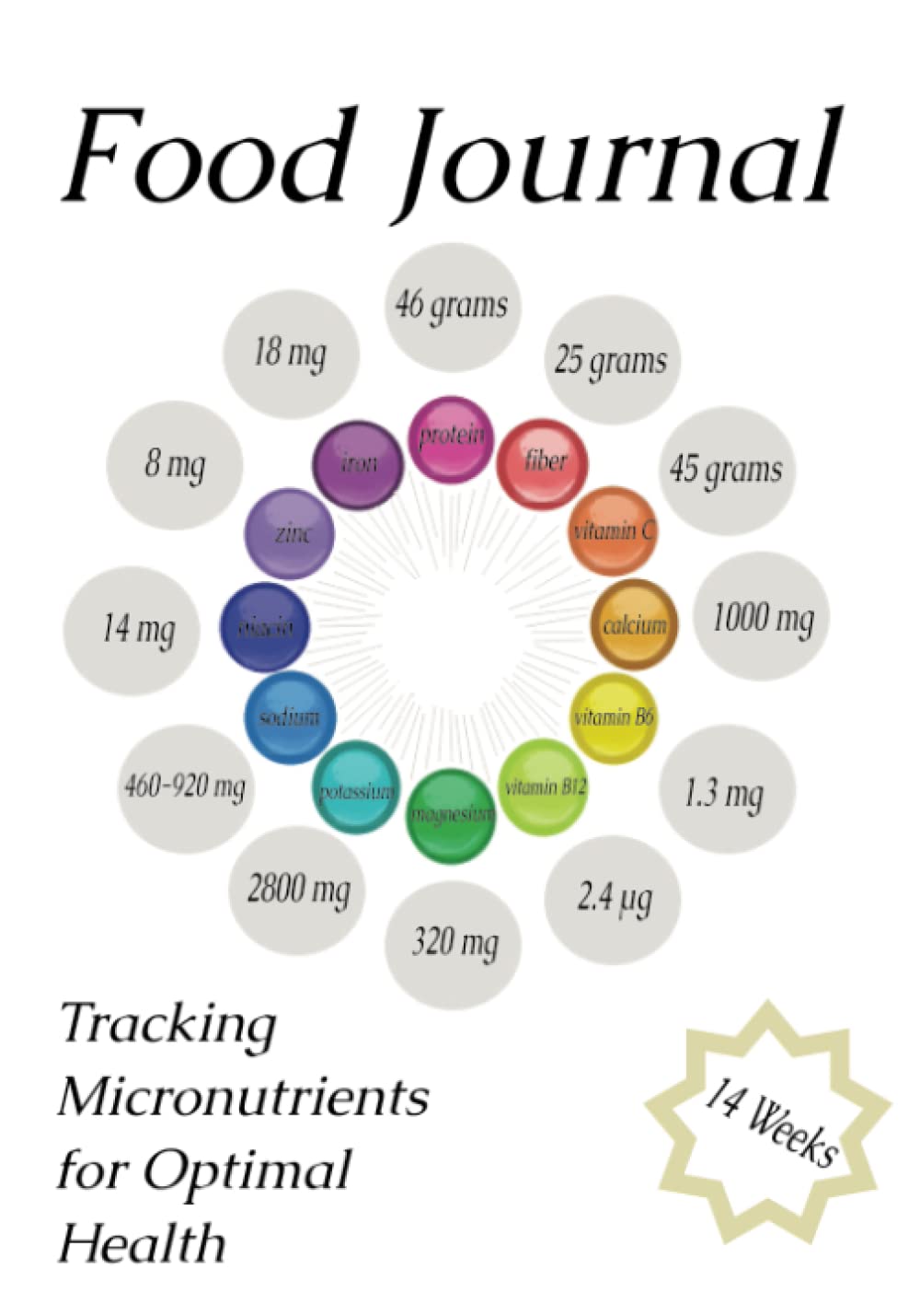 I’ve designed a way to track important nutrients because focusing solely on weight, measurements and calories doesn’t always equate to good health. Make sure that the calories you are getting are filling you with proper nutrients for good health. This 14 week food log tracks calories, protein, fiber, vitamin A, thiamin, riboflavin, niacin, B12, B6, folate, vitamin C, calcium, iron, magnesium, potassium, sodium, and zinc, as well as glasses you can fill in or X-out as you drink water throughout the day. There’s room for notes about exercise, as well as a weekly measurement chart. Feel your best, look your best, and as Christopher Guest in ‘Princess Bride,’ wisely said “if you haven’t got your health, you haven’t got anything.”