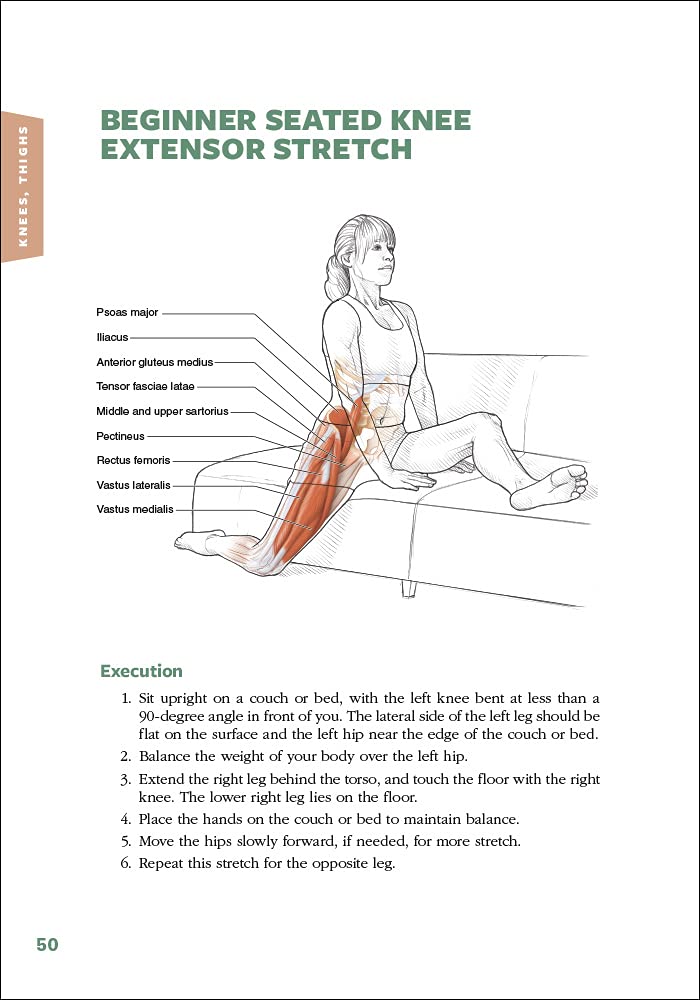 The visually stunningillustrations of 79 stretches cover all major joint areas of the body from the feet to the neck. Each stretch includes step-by-step instructions on how to perform the stretch, the names of the muscles stretched, and a Stretch Notes section detailing the procedures and benefits of every exercise as well as safety considerations and variations for increasing or decreasing difficulty.